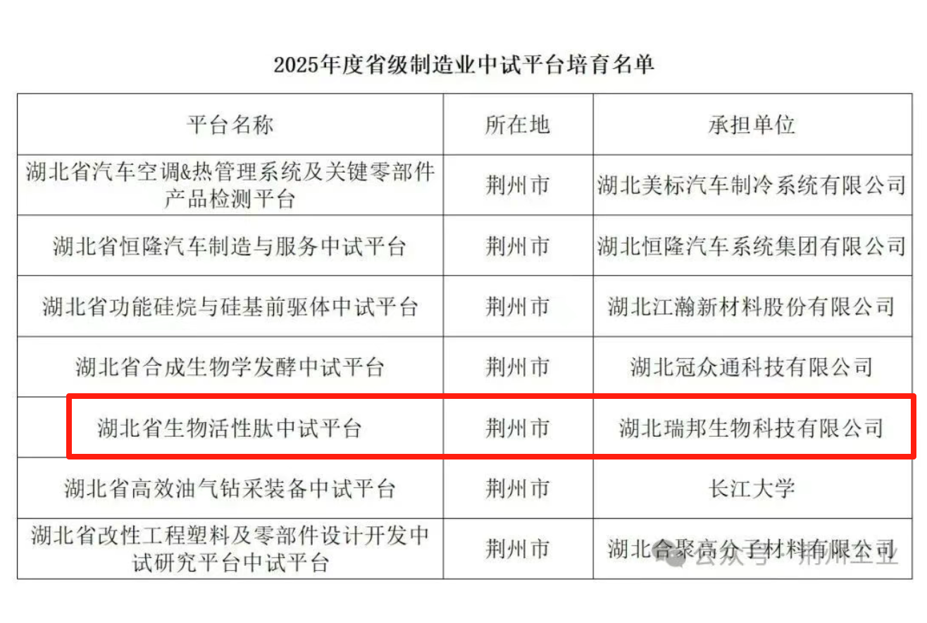 湖北瑞邦生物科技有限公司,成立于2007年12月,位于湖北省荊州開發(fā)區(qū),公司注冊資本1億元,公司占地面積400余畝,目前在崗職工300余人,年產(chǎn)能10000噸,主營生物活性肽系列產(chǎn)品(包括各類動物肽、植物肽)。公司自2005年起開始關注研究生物活性肽生產(chǎn)技術,是國內(nèi)生物活性肽行業(yè)創(chuàng)始企業(yè)之一,亦是生物活性肽生產(chǎn)企業(yè)的領軍企業(yè);目前公司產(chǎn)能位于全國第一,全世界第三。